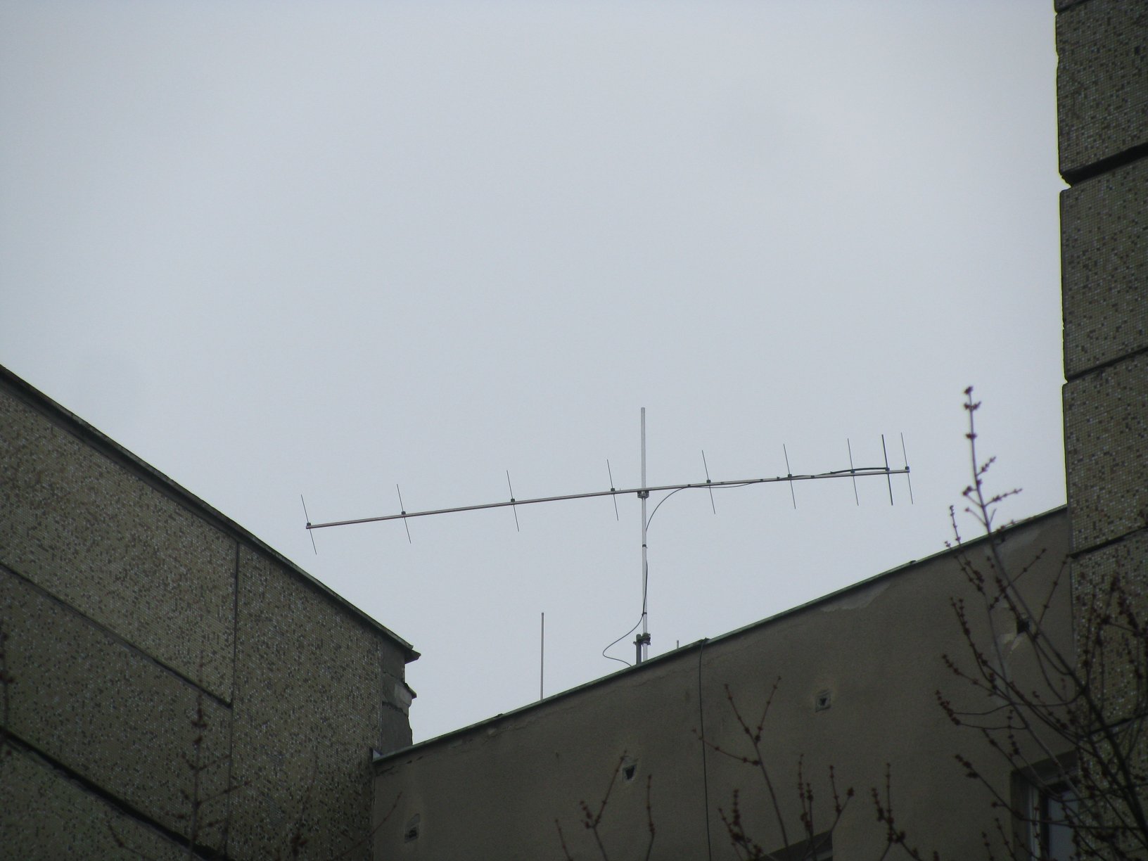 Sprzęt: Yaesu FT-857D, 50W mocy wyjściowej, 16 metrów kabla RF-7, antena 9el OWL G0KSC 12dBd (nośnik 5m) około 5 metrów nad dachem (40m npt + 80m npm) .